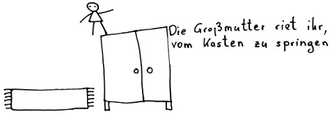 die Großmutter riet ihr, vom Kasten zu springen