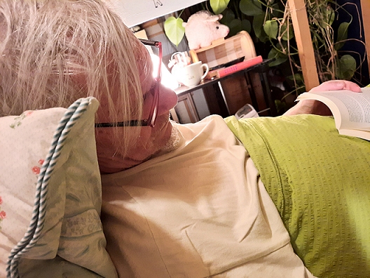 ich schlafe manchmal beim lesen im bett ein und ilse liebt es, mich bei dieser gelegenheit zu fotografieren.