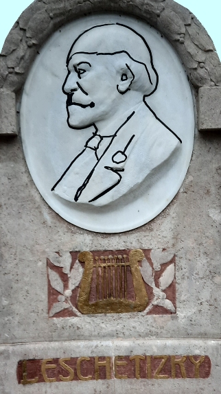 mit leschetizky ist der pianist und komponist theodor leschetizky bzw. teodor leszetycki gemeint, der 1915 im alter von 85 jahren verstarb. er ist am wiener zentralfriedhof begraben und in währing gibt es die nach ihm benannte leschetizkygasse. angeblich gibt es von ihm eine edison walze, auf der er über "kein leben ohne kunst, keine kunst ohne leben" spricht. ich habe keine ahnung, wo man diese walze sehen oder hören kann. ich habe auch keine ahnung, ob der künstler, die künstlerin, der oder die dieses werk schuf, ein fan von leschetizky war. es könnte durchaus sein, dass ihm oder ihr leschetizky überhaupt kein begriff war. egal.